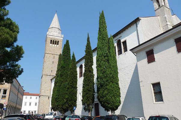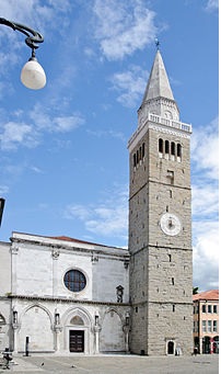 Zgodovina stolnice seže v 12. stoletje, ko je mesto dobilo lastno škofijo. Pročelje je danes mešanica gotskega (spodnji del pročelja) in renesančnega sloga (zgornji del pročelja). Cerkev hrani številne dragocenosti: veliko oltarno sliko »Madone z otrokom na prestolu in svetniki«, ki jo je leta 1516 naslikal Vittore Carpaccio, kamniti sarkofag koprskega zavetnika sv. Nazarija iz 15. stoletja in druge. V prezbiteriju stolnice visi dragocena slika avtorja A. Zanchija »Svatba v Kani«. Stolnične orgle pa krasita Carpacciovi sliki »Predstavitev v templju« in »Pokol nedolžnih otrok«. Njeno notranjost je v 18. stoletju predelal znani arhitekt Giorgio Massari.