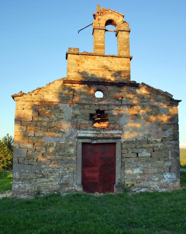 Ob evidentiranju umetnostnih spomenikov v Slovenski Istri je bila deloma pregledana tudi podružna cerkev sv. Ivana, ki leži čisto samotno na planoti izven vasi. Tristrano zaključeni prezbiterij je višji od pravokotne ladje, ki je ravno krita. Le v južni steni ima prezbiterij gotsko šilasto okno, medtem ko so zaključene stranice po mediteranskem načinu brez oken. Nad vhodom v zahodni fasadi je vzidana ležeča kamnita plošča z dolgim napisom, na kateri sta vklesana poleg letnice 1569 tudi dva mojstrska znaka.