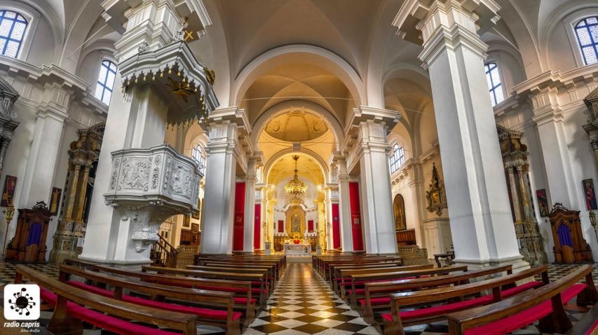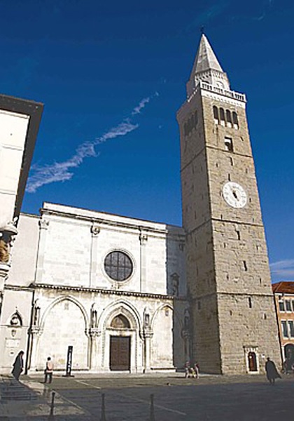 Zgodovina stolnice seže v 12. stoletje, ko je mesto dobilo lastno škofijo. Pročelje je danes mešanica gotskega (spodnji del pročelja) in renesančnega sloga (zgornji del pročelja). Cerkev hrani številne dragocenosti: veliko oltarno sliko »Madone z otrokom na prestolu in svetniki«, ki jo je leta 1516 naslikal Vittore Carpaccio, kamniti sarkofag koprskega zavetnika sv. Nazarija iz 15. stoletja in druge. V prezbiteriju stolnice visi dragocena slika avtorja A. Zanchija »Svatba v Kani«. Stolnične orgle pa krasita Carpacciovi sliki »Predstavitev v templju« in »Pokol nedolžnih otrok«. Njeno notranjost je v 18. stoletju predelal znani arhitekt Giorgio Massari.