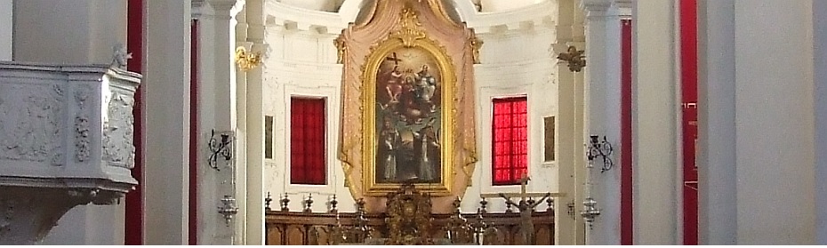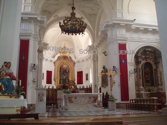 Gradnja cerkve je trajala tri leta , ki se ji je priklučil še tudi samostanski kompleks. Oltarna slika je ena izmed najlepših umetnin v mestu. Prikazana je Marija z otrokom, ki blagoslavlja prizadete od kuge in sprejema mesto Koper v svoje varstvom. Koprska veduta na sliki je dragocen dokument, ki s precejsnjim posluhom za verodostojnost kaže mestno podobo v dvajsetih letih 17.stoletja.