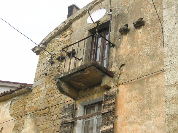 Čelna stran vile Dandri ima nekaj zanimivih detajlov. Balkon iz monolitne kamnite plošče počiva na kamnitih oporah, pri čemer se je ena že odlomila.