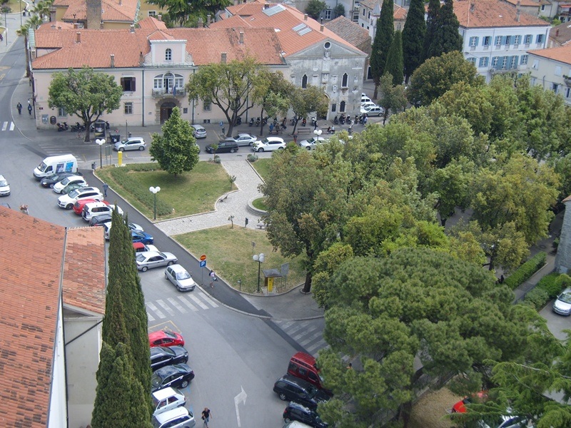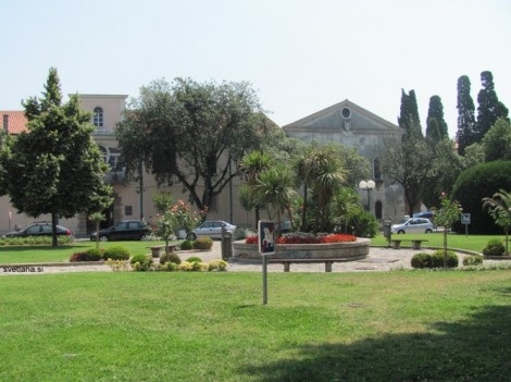 Nasproti stolnice pa tudi Škofijsko palačo in njen renesančni portal (Trg Brolo 11).