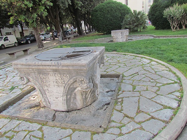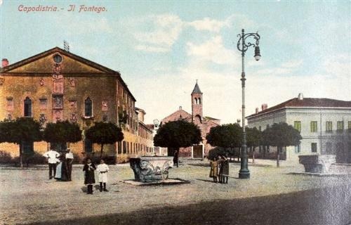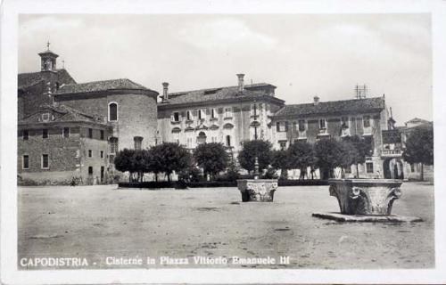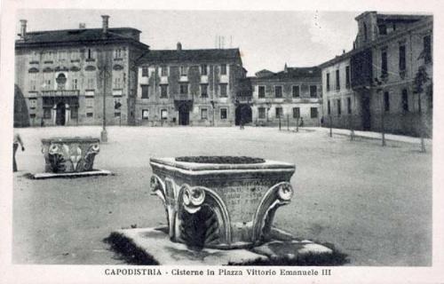Celotna površina trga je bila namenjena zbiranju vode, ki se je ob dežju po tlaku stekala v velik zbiralnik. S preprostim sistemom filtracije so si prebivalci tako priskrbeli večje količine pitne vode, ki jih je ob velikih sušah in v času vojn rešila pred žejo. Ostanek tega sta danes dva čudovita vodnjaka, ki ju je dal zgraditi in mojstrsko izklesati podestat Marino Bonzio leta 1485.