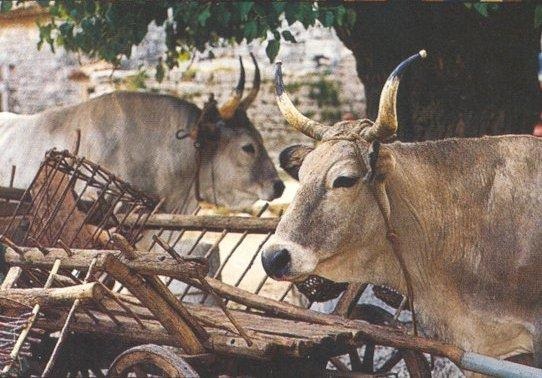 “...Te u vasi smo si vedno pomagali... delali smo vse na roke, kosili travo, grabli, pobirali frmnton, kopali, ma še zdej najraje delam tako. Naša družina je bila velika in tudi kmetijo smo imeli veliko in vse smo delali sami. Imeli smo volove, prašiče, teleta, krave… Vsak vol je imel svoje ime; eden je bil Boškarin, drugi Gojardo, Napoli, Bruno… ma so bli veliki in pametne živali. Smo jih imeli radi. Ma prišla je freza in kosilnica in živine je bilo vedno manj... in danes je ni več...