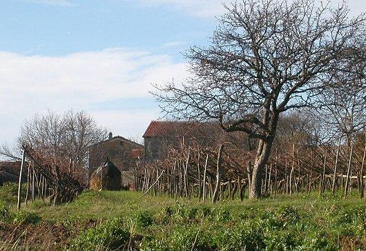 Nad vasjo, tik ob cesti, so nekoč postavili kapelico. Morda se je njen graditelj navdušil nad visoko in hribovito Čičarijo v ozadju in je zato kapelico prav tu potegnil proti nebu. Toda neusmiljeni zob časa jo je že dodobra načel...